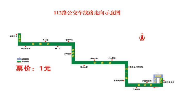 112路:自東營長途汽車總站始發(fā),途經(jīng)蒙山路、黃河路、西二路、濟南路、西四路、淄博路、玉山路、到達終點站雅苑北區(qū),票價不變,仍為1元/人次;