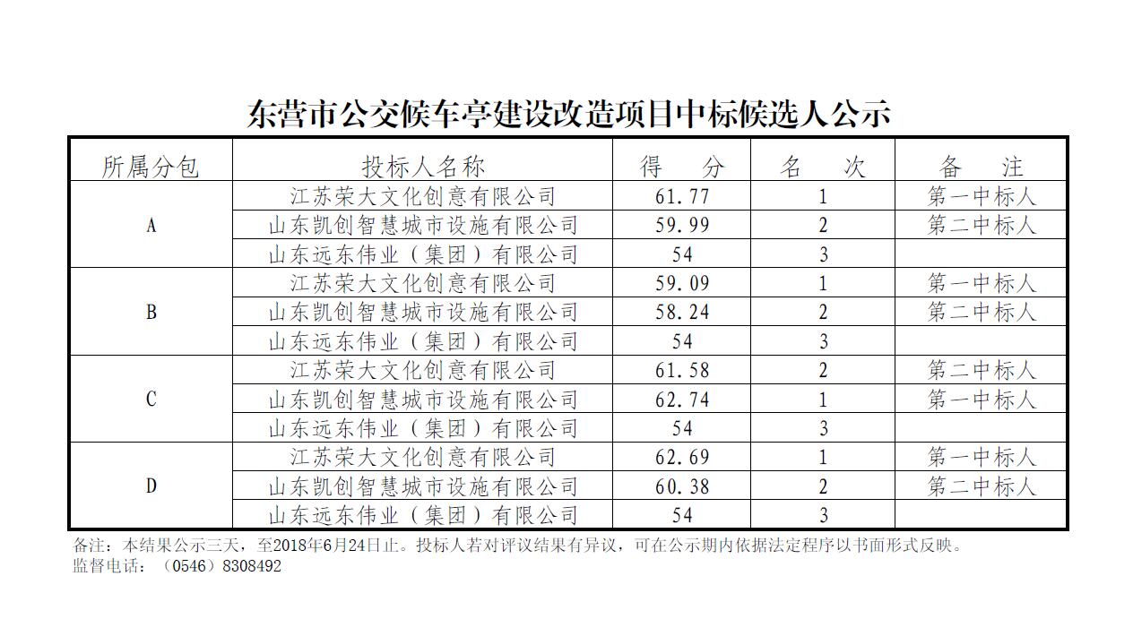東營市公交候車亭建設(shè)改造項目中標候選人公示