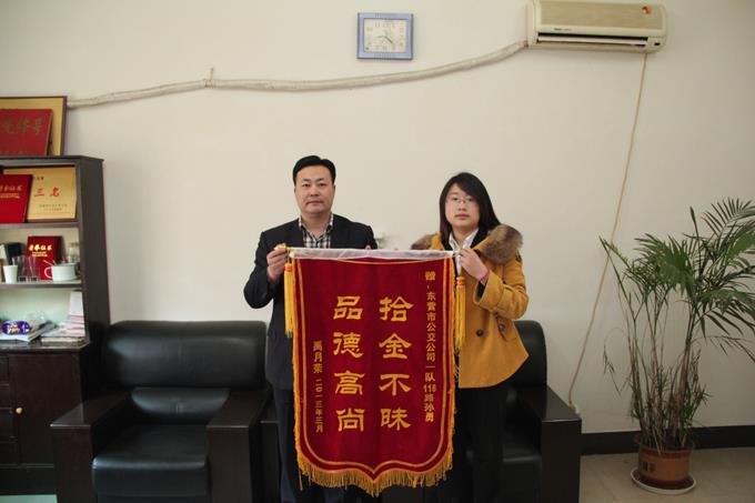 4月9日上午,康源律師事務(wù)所的禹月榮女士拿著一面寫(xiě)有“拾金不昧、品德高尚”的錦旗來(lái)到市公交公司汽車(chē)一隊(duì),感謝車(chē)隊(duì)駕駛員孫勇師傅的高尚品德。據(jù)車(chē)隊(duì)了解得知,4月4日,禹月榮女士乘坐孫勇師傅駕駛的118路去上班,上班以后發(fā)現(xiàn)裝有重要文件的拎包不見(jiàn)了,她心急如焚,當(dāng)時(shí)就癱坐在地上,因?yàn)榘锩嫜b有五個(gè)檔案袋,卷中裝有重要的訴訟材料,其中很多資料無(wú)法彌補(bǔ),后果不堪設(shè)想。