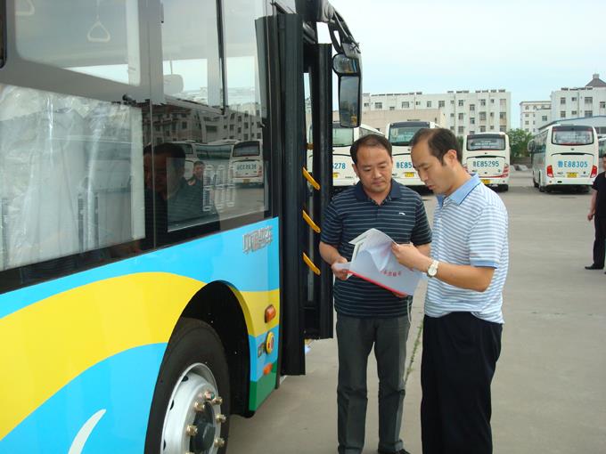 2012年6月10日下午,市車管所西城分所沈?qū)氒娝L、張新東指導(dǎo)員、高勇、李健全副所長和重點車輛管理辦公室趙主任利用周末休息時間來到市公交公司上門服務(wù),對70輛新購置公交車進行車輛外檢,確保車輛及時投入運營。