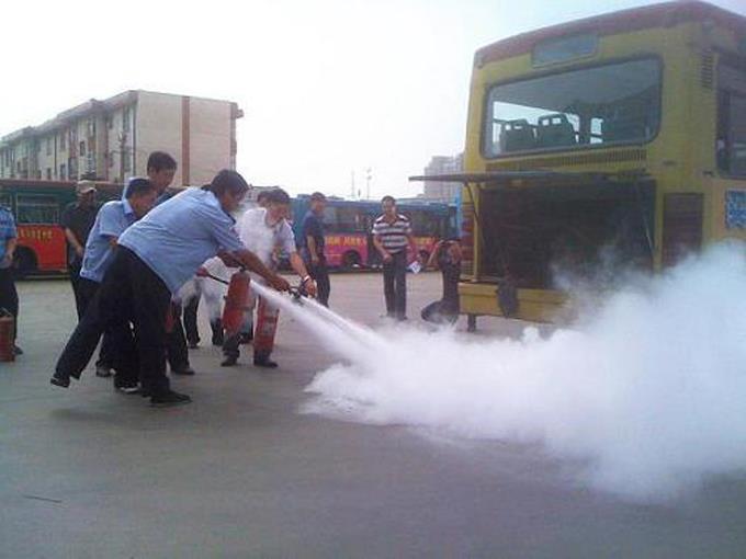 演練前,車隊領(lǐng)導(dǎo)景洪培同志首先講解了公交車發(fā)生火災(zāi)的幾種情況和特點、遭遇突發(fā)火災(zāi)時應(yīng)對的措施、步驟以及應(yīng)重點注意的事項,救火時應(yīng)先做什么,后做什么,應(yīng)該怎么做,需要提醒乘客什么,必要時讓乘客提供什么樣的幫助等一系列的問題。并再三強調(diào)要求駕駛員做好日常兩檢(出車前、收車后)和例查(油電路、滅火器、安全錘),把消防工作重點放在預(yù)防上。萬一突遇車輛火災(zāi),應(yīng)把保護乘客生命安全,及時沉著冷靜疏導(dǎo)乘客放到第一位,然后再迅速進行滅火,報警,通知車隊等工作。最后,所有參加演練的人員模擬進行了車輛著火后,駕駛員如何停車、開車門、疏導(dǎo)乘客下車,斷電源、正確使用滅火器滅火等一系列的實際操作演練,直到參與的駕駛員都能熟練掌握突遇車輛火災(zāi)時的搶險程序。