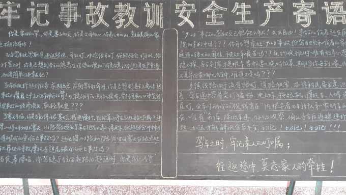 近日,市公交公司汽車三隊為貫徹落實好公司第四季度安委會的會議精神,做好駕駛員工安全教育,進一步抓好車隊安全生產工作,一是針對鄉(xiāng)鎮(zhèn)線路的營運特點,專門出了一期“安全生產黑板報”,二是專門制作了一幅以“注重安全,關愛生命”為主題的展板,擺放到大廳里,以此警醒和告誡廣大一線駕駛員,行車中要把安全放在首位,牢記遵紀守法,按章行車、謹慎駕駛、確保安全。