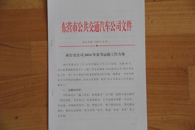 2014年春運從1月16日開始至2月24日結(jié)束,為期40天。為認(rèn)真貫徹落實黨的十八屆三中全會精神,切實做好2014年春運工作,為廣大市民創(chuàng)造良好的出行環(huán)境,根據(jù)省、市和市局有關(guān)文件和會議精神,結(jié)合工作實際,市公交公司成立了春運領(lǐng)導(dǎo)小組,提前做好了線路調(diào)查,加強了預(yù)測分析,圍繞“融入民生、和諧春運”的主題,堅持早部署、早動員、早安排,制定了2014年春運工作實施方案,努力實現(xiàn)“安全、暢通、和諧、有序”的工作目標(biāo)。