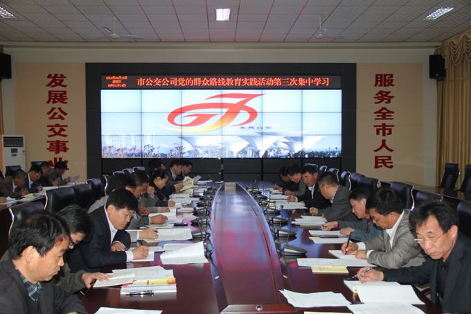 為深入推進(jìn)教育實(shí)踐活動(dòng)開(kāi)展,加強(qiáng)黨的群眾路線理論武裝,市公交公司黨的群眾路線教育實(shí)踐活動(dòng)第三次集中學(xué)習(xí)于4月19日組織開(kāi)展。主要學(xué)習(xí)了《厲行節(jié)約、反對(duì)浪費(fèi)》重要論述摘編和《黨的群眾路線教育實(shí)踐活動(dòng)學(xué)習(xí)文件選編》等材料。全體黨員認(rèn)真聆聽(tīng),詳細(xì)記錄,堅(jiān)持原汁原味、原原本本,通過(guò)系統(tǒng)研讀,實(shí)現(xiàn)理論提升、思想升華。