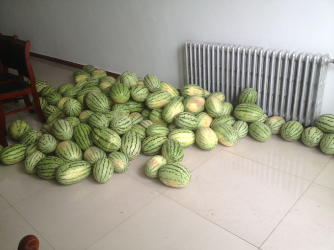 “大熱天的,大家很辛苦,給工友們買些西瓜吃,車隊也是我的家!”楊海衛(wèi)一邊從三輪車上搬運著西瓜,一邊說笑著。