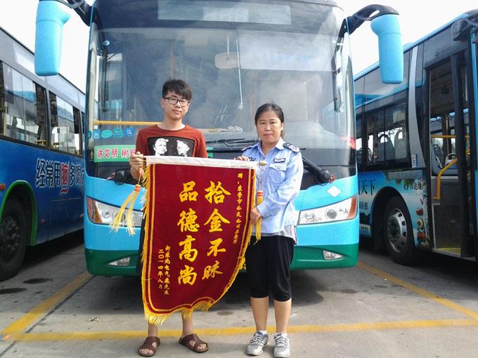 7月31日,鹿先生不慎將錢包遺漏在164路公交車上,于是急忙來到車隊(duì)尋找,該路駕駛員蘇愛軍將裝有1500元現(xiàn)金、身份證、銀行卡和工作證的錢包物歸原主,鹿先生非常感動,送來錦旗表示感謝。