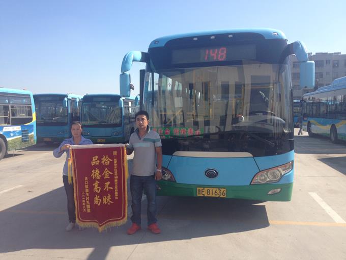 9月3日,家住東營(yíng)區(qū)史口鎮(zhèn)寨王村的王國(guó)梁先生乘坐148路車外出,下車后發(fā)現(xiàn)錢包遺忘在公交車上。汽車四隊(duì)駕駛員郭嘉撿到了王國(guó)梁先生遺失的錢包,發(fā)現(xiàn)內(nèi)有身份證、銀行卡、現(xiàn)金一萬(wàn)二千余元,忙將其上交車隊(duì)暫時(shí)保管,車隊(duì)及時(shí)聯(lián)系失主并將失物完璧歸趙。王國(guó)梁接過(guò)失而復(fù)得的錢包顯得意外而又驚喜,執(zhí)意要給公交車駕駛員郭嘉師傅酬金3000元表示感謝,被她婉言謝絕了。翌日,王國(guó)梁拿著一面寫有“拾金不昧、品德高尚”的錦旗來(lái)到車隊(duì),感謝郭嘉師傅拾金不昧的高尚品德。