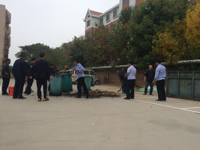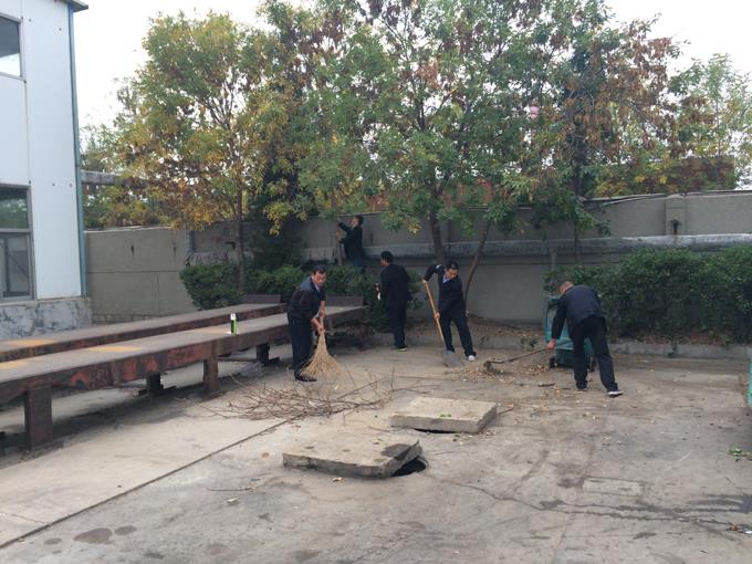 衛(wèi)生大掃除中,他們或三人一伙,或五人一組,有的負(fù)責(zé)修剪參差不齊的綠化帶,有的負(fù)責(zé)清理枯黃的雜草,有的負(fù)責(zé)拿著垃圾袋拾撿煙頭,有的負(fù)責(zé)清掃被風(fēng)卷到墻角的垃圾,有的負(fù)責(zé)裝卸和拖運(yùn)垃圾箱,一個個忙的滿頭大汗,即使飛揚(yáng)的塵土沾滿了衣服也全然不顧,令人為之動容。