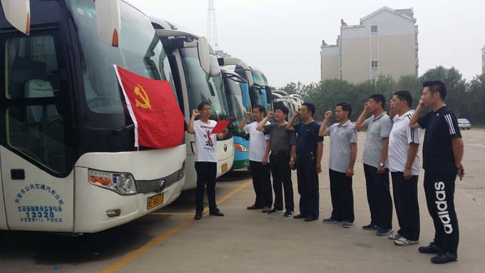 為慶祝中國(guó)共產(chǎn)黨建黨95周年,深化“兩學(xué)一做”主題教育活動(dòng),使全體黨員進(jìn)一步牢記入黨誓言。7月1日上午,東營(yíng)市公交公司汽車(chē)二隊(duì)組織全體黨員在停車(chē)場(chǎng)開(kāi)展了重溫入黨誓詞活動(dòng)。