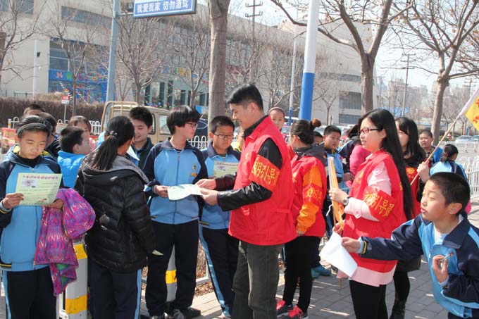 志愿者利用放學(xué)時段在實(shí)驗(yàn)中學(xué)公交車站點(diǎn)向等車的同學(xué)們發(fā)放文明安全乘車宣傳單,耐心地向同學(xué)們宣講安全乘車和文明乘車知識,號召同學(xué)們做到自覺排隊(duì)、文明乘車,建立良好的乘車秩序,展示良好的精神風(fēng)貌,為美麗幸福新東營的建設(shè)做出積極的貢獻(xiàn)。