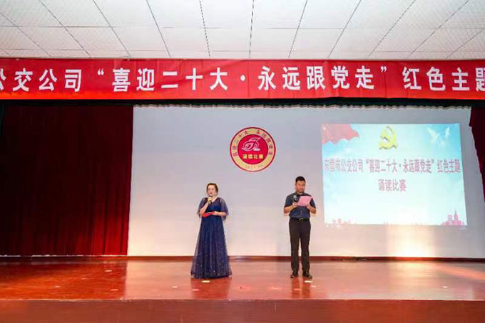 為迎接黨的二十大勝利召開(kāi),更加深入學(xué)習(xí)貫徹省十二次黨代會(huì)精神,集中展現(xiàn)新時(shí)期公交干部職工在各自工作崗位上的新作為、新?lián)?dāng)、新姿態(tài),引導(dǎo)公司干部職工更加堅(jiān)定理想信念,在“七一”建黨節(jié)來(lái)臨之際,市公交公司于6月30日上午組織開(kāi)展了“喜迎二十大·永遠(yuǎn)跟黨走”紅色主題誦讀比賽活動(dòng)。市交通運(yùn)輸局直屬機(jī)關(guān)黨委專職副書記趙秀來(lái)同志到場(chǎng)指導(dǎo),市公交公司黨委委員、工會(huì)主席蔣積堯,黨委委員、辦公室主任劉玉忠等出席活動(dòng)。