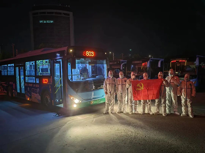 公司保修一廠副廠長商同衛(wèi)凌晨2點(diǎn)半被電話驚醒,“根據(jù)防疫工作需要,抓緊組織咱們的人員凌晨3點(diǎn)前到公司就位,改裝轉(zhuǎn)運(yùn)車輛”,電話那頭傳來的是保修一廠負(fù)責(zé)人的聲音。商同衛(wèi)連忙從床上爬起來趕往公司,路上不停打電話通知其他同事,半個(gè)小時(shí)后保修一廠人員全部到位,他們與同樣接到任務(wù)的保修二廠的同事們一起,連夜完成了300臺(tái)公交車物理隔離改造,確保了車輛全部到達(dá)隔離轉(zhuǎn)運(yùn)條件。與此同時(shí),各車隊(duì)微信群也熱鬧起來?!耙咔楫?dāng)前,公司黨委號(hào)召連夜組建應(yīng)急轉(zhuǎn)運(yùn)隊(duì)伍,請(qǐng)大家根據(jù)個(gè)人家庭實(shí)際情況報(bào)名接龍”,這段話在公司各車隊(duì)的微信工作群一經(jīng)發(fā)出,就迅速得到了回應(yīng),也許是9月29日晚個(gè)別小區(qū)的封控讓大家提前感受到了疫情緊張的氣氛,此時(shí)雖已凌晨,但很多同志并未入睡。“隊(duì)長,我第一個(gè)報(bào)名”“我是黨員我先上”“算我一個(gè)”,大家紛紛響應(yīng)公司黨委號(hào)召,踴躍報(bào)名。很快,由東、西城各車隊(duì)300名駕駛員和300臺(tái)完成物理隔離改裝的公交車組成的應(yīng)急轉(zhuǎn)運(yùn)隊(duì)伍9月30日早6時(shí)前就組建并按區(qū)域集結(jié)到位。
