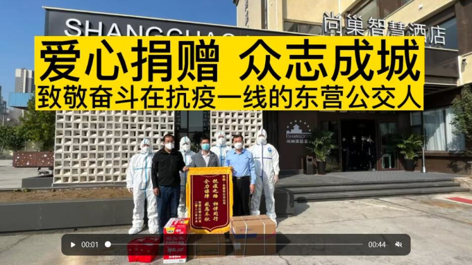 近日,在我市疫情防控的關(guān)鍵時刻,東營區(qū)群眾代表郭永軍捐贈一批愛心物資,用于疫情防控工作,為抗疫工作貢獻自己的力量,并向奮戰(zhàn)在抗疫一線的東營公交人送錦旗表示感謝,用真情和愛心傳遞社會正能量,助力疫情防控工作。
