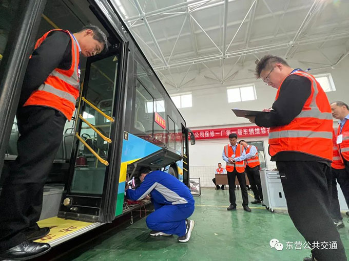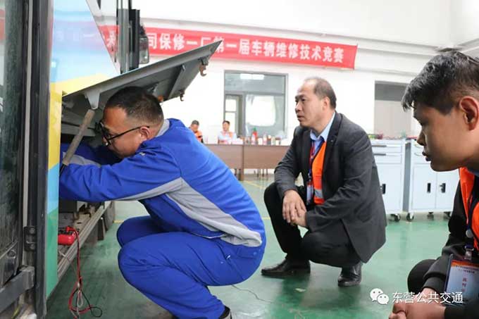 為保證比賽的公平性,本次比賽理論考試試題開考前20分鐘出題打印,實操比賽裁判由多次參加省內公交維修技術比武的裁判和選手擔任,并邀請中通客車廠售后服務經理李延營同志擔任主要評分人員。