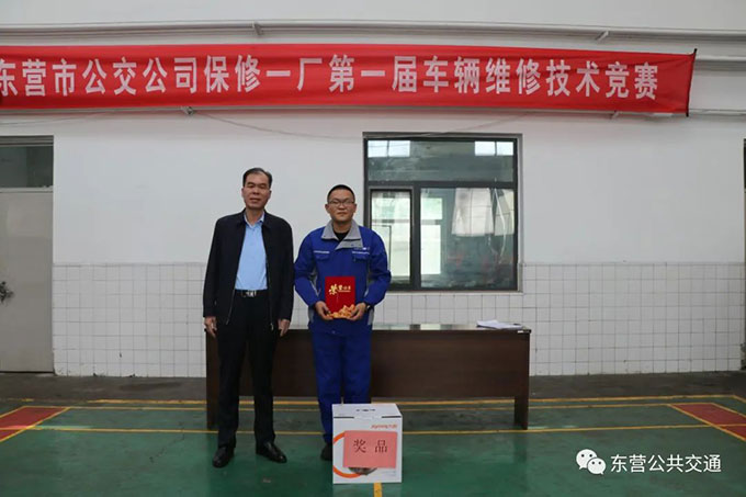 公司黨委成員、工會主席蔣積堯同志、中通客車廠售后服務經理李延營同志、公司技術科科長馮子英同志分別為獲得一、二、三等獎的選手進行了頒獎。