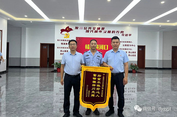 失主家屬杜先生趕做一面“拾金不昧好心人,雷鋒精神閃光輝”的錦旗,驅(qū)車來到車隊(duì)表達(dá)謝意。