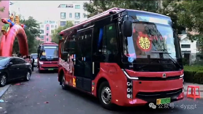 這兩輛公交車跟隨著迎親隊(duì)伍,高調(diào)得“秀恩愛”,吸引了無數(shù)的目光和祝福。寬敞的車廂,可以輕松容納一眾親朋好友,笑聲、祝福聲此起彼伏,為新人的幸福時(shí)刻,增添了更多的溫馨色彩。