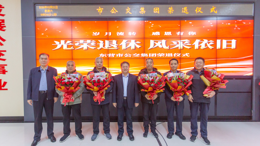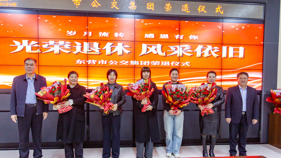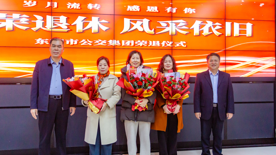 3月21日上午,市公交集團19名光榮退休職工與黨委班子成員齊聚一堂,舉辦2025年職工榮退儀式,集團黨委向退休職工送上鮮花與祝福。