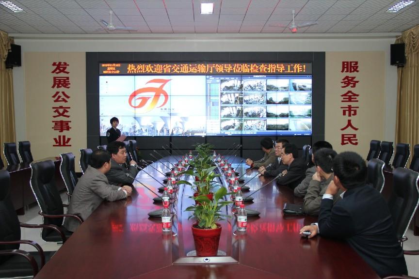 11月18日上午,省交通運(yùn)輸廳“兩保兩樹”活動(dòng)指導(dǎo)組王際遜處長(zhǎng)一行,在市交通運(yùn)輸局工會(huì)主席王愛軍、運(yùn)管處處長(zhǎng)李希俊、市公交公司經(jīng)理朱新民等有關(guān)領(lǐng)導(dǎo)的陪同下,到東營(yíng)公交智能調(diào)度指揮中心對(duì)3G視頻監(jiān)控系統(tǒng)進(jìn)行了檢查指導(dǎo)。