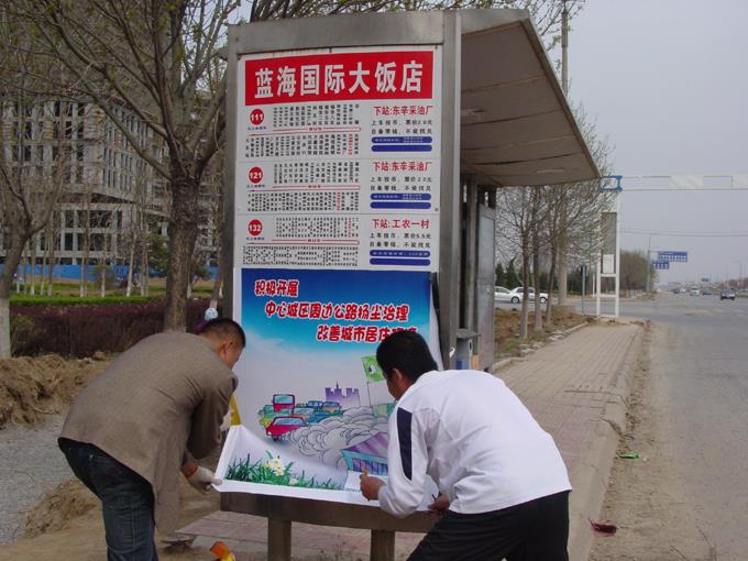 近日,市公交公司廣告部根據(jù)全市創(chuàng)建全國文明城市工作要求,按照公司創(chuàng)城工作部署,積極行動,精心設(shè)計制作了以節(jié)能環(huán)保、倡導(dǎo)低碳等內(nèi)容的公益廣告畫面張貼在500余個市區(qū)公交站牌上。豐富生動、賞心悅目的廣告畫面,不僅讓乘客在候車之余感受到了一份清新自然的愜意,也讓廣大市民進一步提升了節(jié)能減排、保護環(huán)境的自覺意識,營造了濃厚的創(chuàng)城氛圍,有力的推動了我市創(chuàng)建全國文明城市和生態(tài)文明典范城市的建設(shè)步伐。