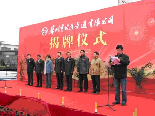 2010年12月15日,蘇州市公共交通有限公司舉行了隆重的揭牌儀式。市委副書記、市長閻立、副市長朱建勝、市政協(xié)副主席葛維玲等領導出席活動,現(xiàn)場的300多名公交員工共同見證這一歷史性時刻的到來。