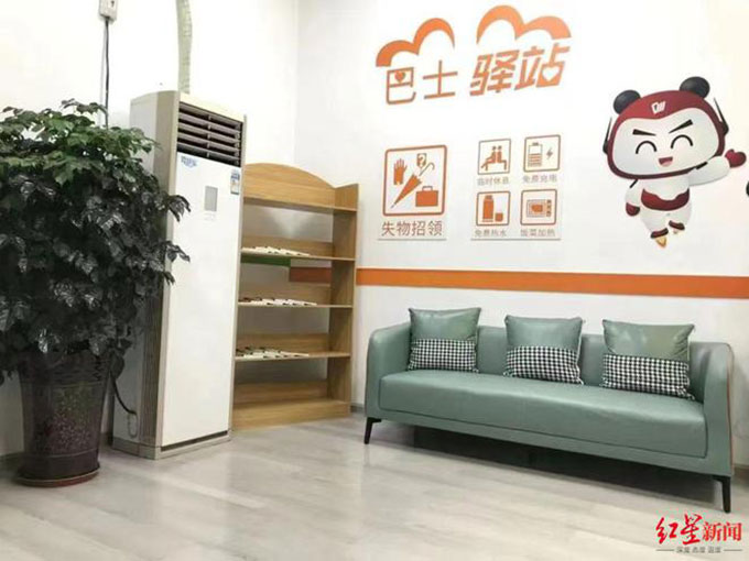 7月9日,紅星新聞?dòng)浾邚某啥脊患瘓F(tuán)獲悉,為提升服務(wù)質(zhì)量,延伸公交場(chǎng)站服務(wù)功能,近日,成都公交首個(gè)“巴士驛站”在金沙公交樞紐站正式亮相。“巴士驛站”內(nèi)可提供失物招領(lǐng)、換乘咨詢等多項(xiàng)出行服務(wù),沙發(fā)、電腦、空調(diào)、飲水機(jī)、微波爐、冰箱、充電插座等便民服務(wù)設(shè)施一應(yīng)俱全,供乘客免費(fèi)使用。