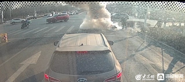 眼看火苗隨風越燒越旺,危急時刻,17路駕駛員張曉良駕駛著魯E97102公交車運行途經(jīng)此處等紅燈,遠遠地看到前方冒著火光和滾滾濃煙的電動車,他拿起車載滅火器沖了過去,“當時路上的行人和車輛較多,情況十分的危急。”張曉良回憶說,他沒顧上仔細查看,把一瓶滅火器噴完,便抓緊回到車上繼續(xù)運行。